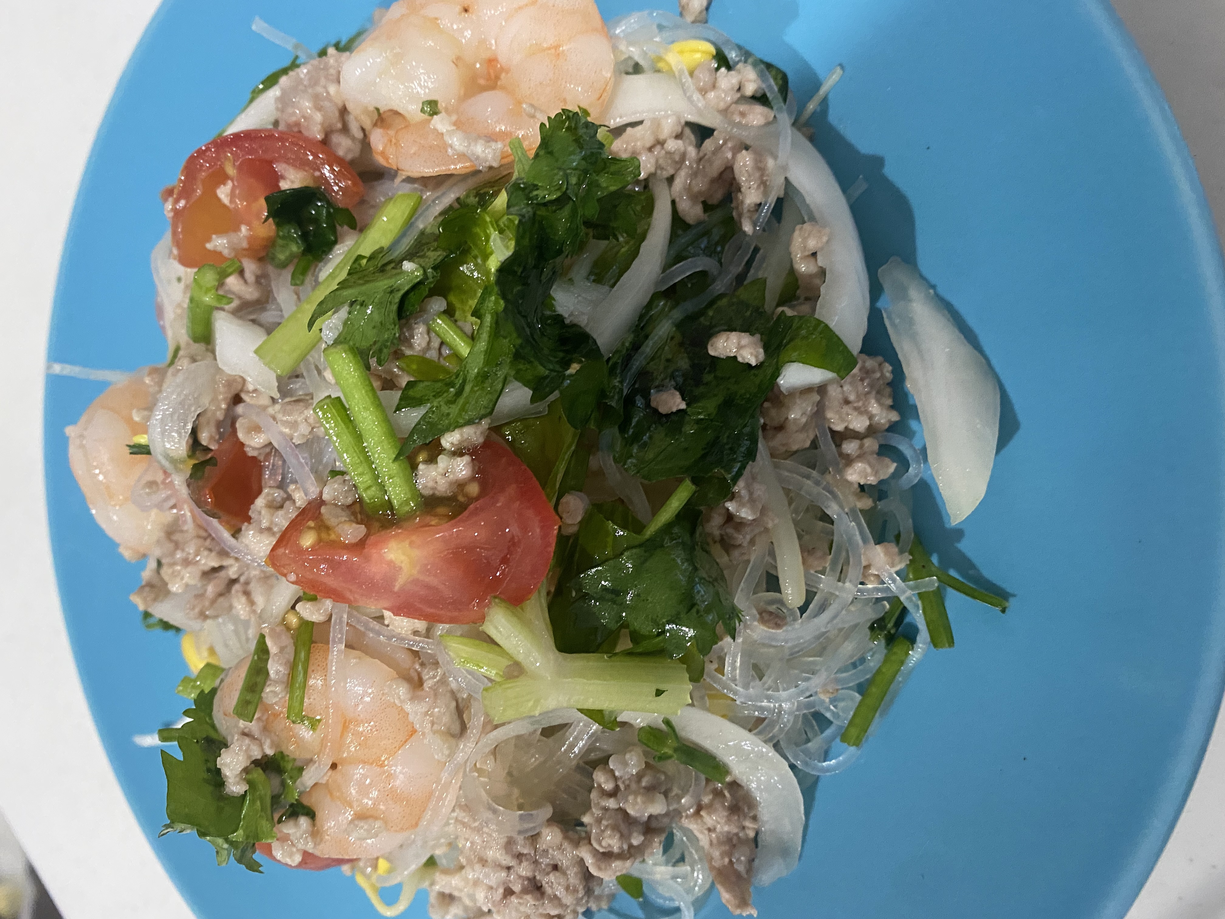 休日に、ヤムウンセンを作りましたこの上にパクチー増し増しでいただきました♡