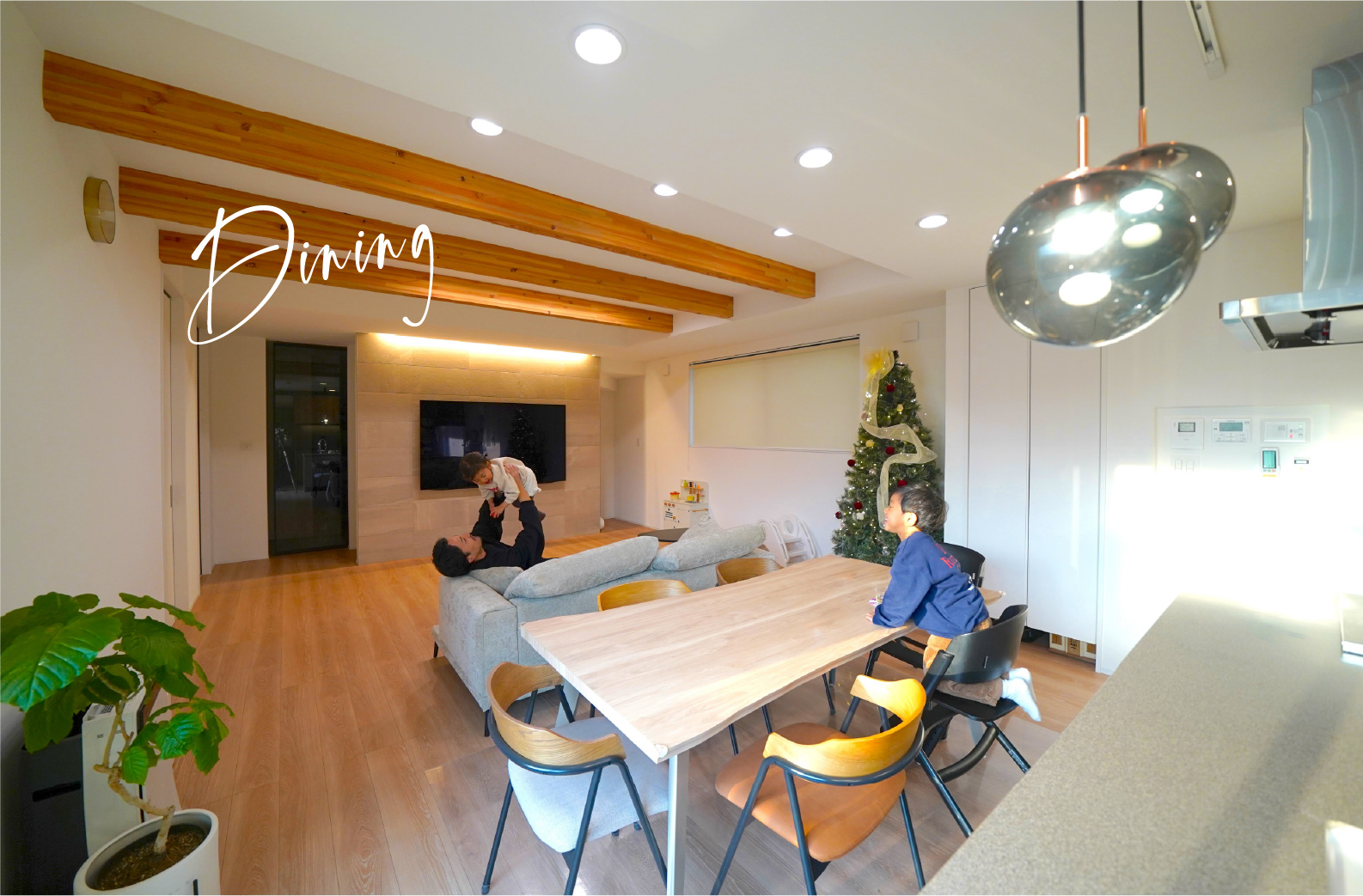 間口が広い空間は各スペースとの適度な距離感を保ちつつ、開放感を感じさせてくれます。